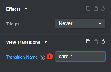 Currently, all view transition names in one page must be unique. Iām not sure that adding unique transition names in Blog Loop Items (e.g. card-1, card-2, card-3) would be the best approach as that would mean that the user has to match these transition names in every blog page and keep them in sync. Every transition also comes with some rendering overhead especially in blog loops with a lot of items.