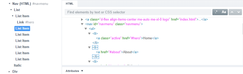 Hello, I’m new to BSS and I have imported a template. On the index-page is a NAV HTML set with a list and several list items. The first list item has a link with a claasname “Active” and href “#hero”. The other list items have no links, but they do have href.