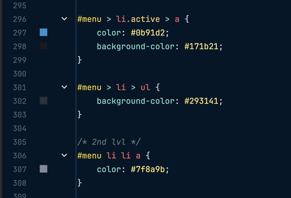 It would be really helpful to show the color on the side when editing a css or scss file. I have added a sample as it is done in PHPStorm from Jetbrains, but other editors have this feature as well.